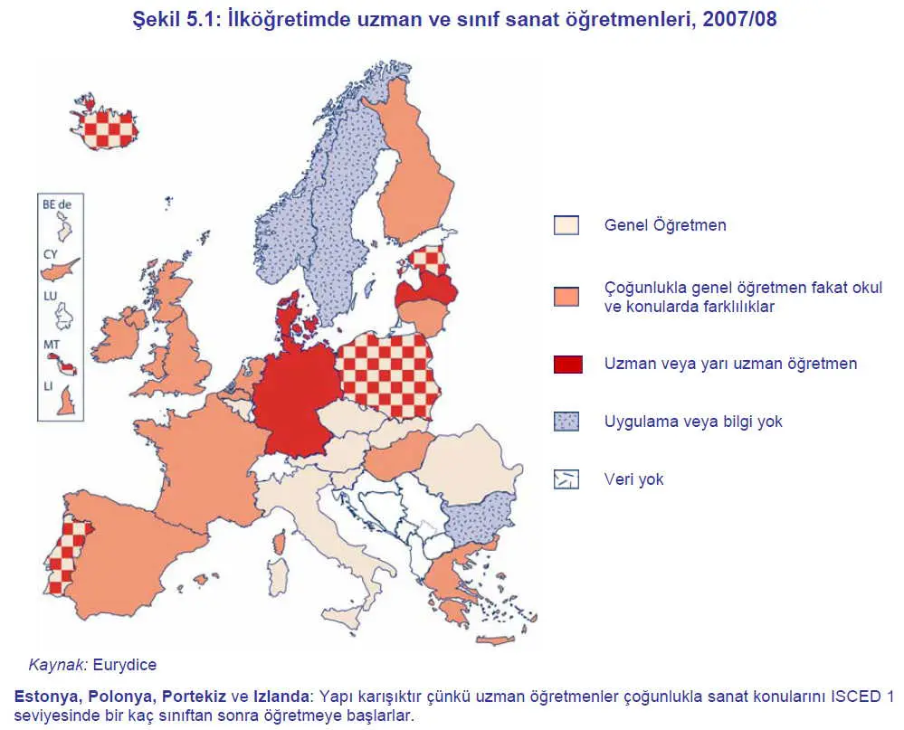 Resmi kaynaklara göre sanat eğitimine ayrılan zaman açısından, neredeyse Avrupa ülkelerinin yarısına yakını ilk öğretimde yılda 50 ila 100 saat arasında bir eğitim süresini sanat eğitimine harcamaktadırlar. Alt orta öğretimde öğretim saati biraz daha düşüktür; 25 ile 75 saat arasında sanat eğitimi yapılır.