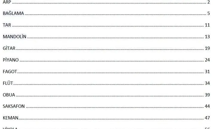 Çalgı Yapım Onarım dersi ders notlarının PDF dökümanı olarak yapılmış halidir. Dosya içerisinde mevcut olan çalgılar aşağıdaki görselde mevcuttur.