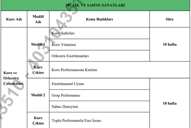 - Çıktı Odaklı Eğitim: Süreç sonunda öğrencilerin bir enstrümanı çalması veya bir performans sergilemesi (konser, dinleti vb.) beklenecek. Kursu başarıyla tamamlayanlara katılım belgesi verilecek.