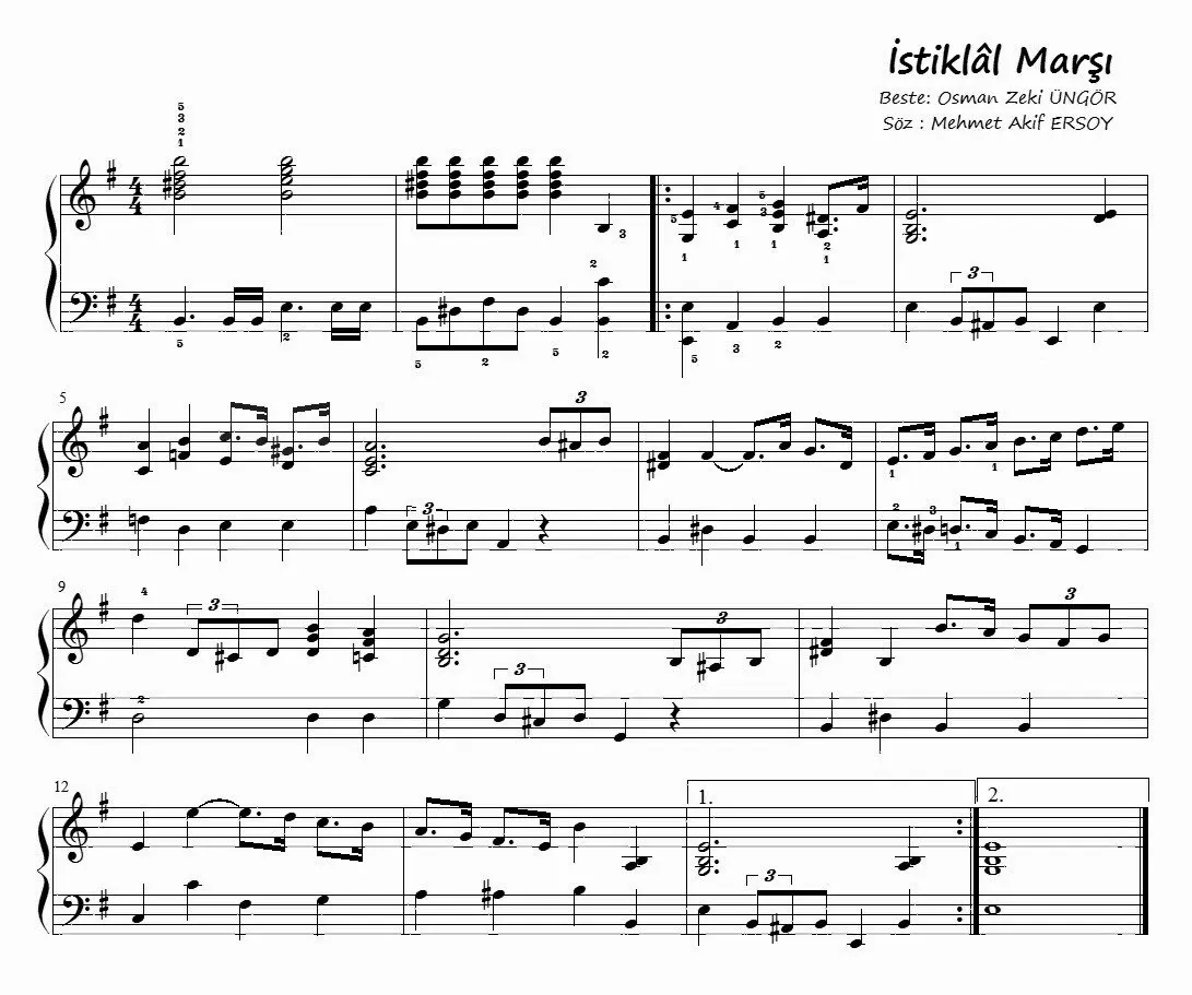 İstiklal Marşının Piyano eşliği ektedir. Üzerine tıklayıp büyütebilir ve bilgisayarınıza indirebilirsiniz.