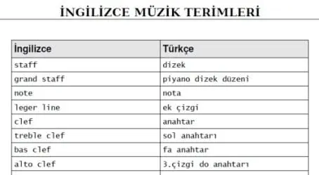 Aslında çok lazım olduğunu düşündüğüm bilgi. İnternette kaynak tararken yabancı sitelerin müzik konusunda daha önde olduğunu görmüşünüzdür. Özellikle nota kaynaklarının bir çoğu İngilizce. Aşağıda müzikle ilgili İngilizce terim ve sözcüklerin Türkçe karşılıklarını bulabilirsiniz.