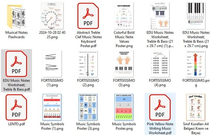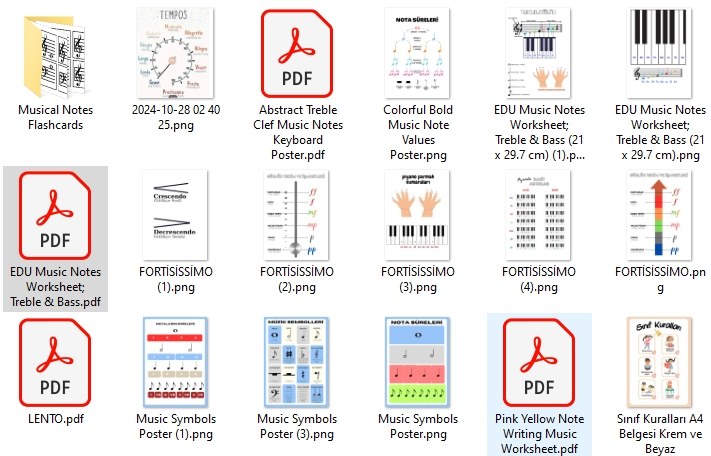 Müzikle ilgili bilgilerin yer aldığı ve kendim hazırladığım posterleri buraya yüklemek istedim. Aşağıdaki görselde hangileri olduğunu görebilirsiniz. Renkli olarak basıp öğrencilerinize dağıtabilirsiniz. Umarım işinize yarayacaktır.
